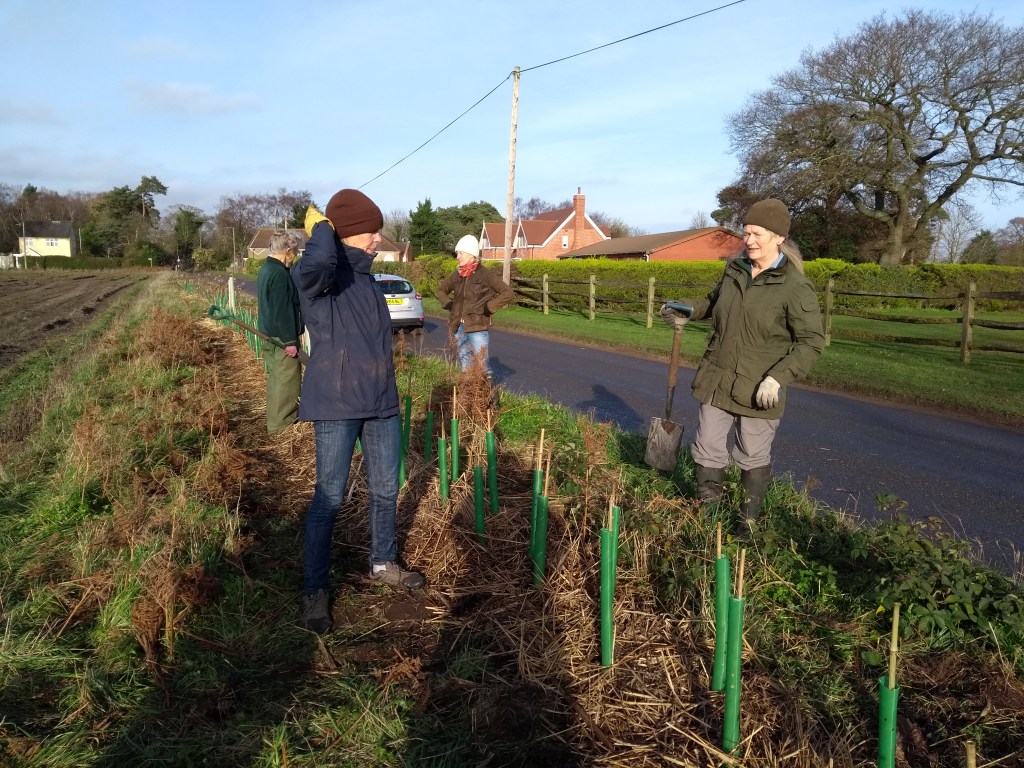 The hedging was supplied by Suffolk Tree Warden Network sponsored by the Tree Council, with the Woodland Trust and Suffolk County Council working in partnership. The straw for mulching was supplied by James Stock, Master Thatcher.